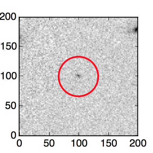The red circle in the various panels is 1" in radius. The images are 6"x6".