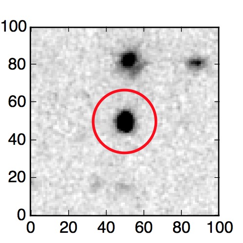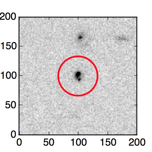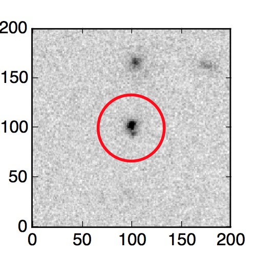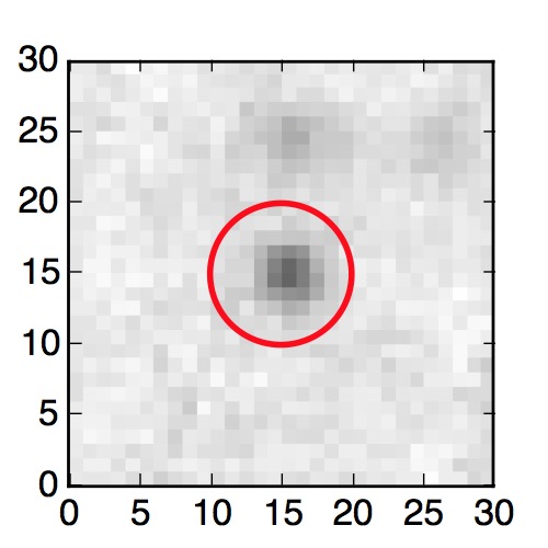 The red circle in the various panels is 1" in radius. The images are 6"x6".