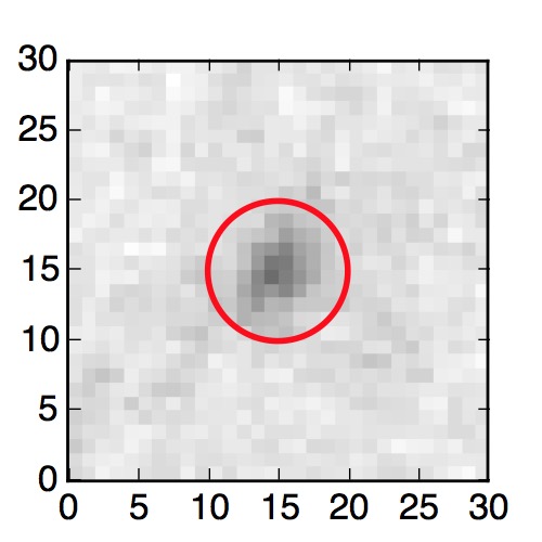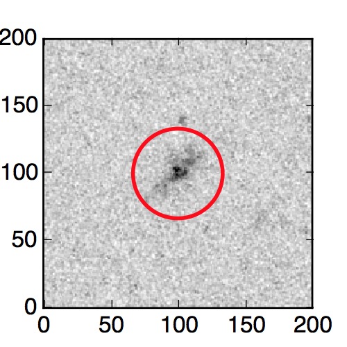 The red circle in the various panels is 1" in radius. The images are 6"x6".