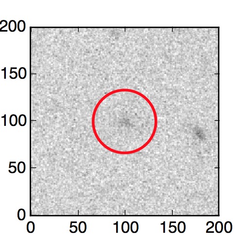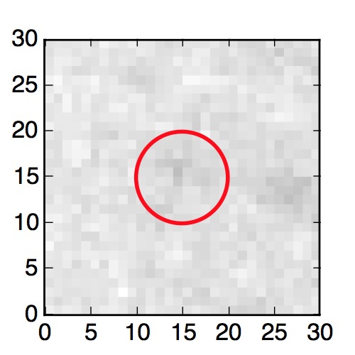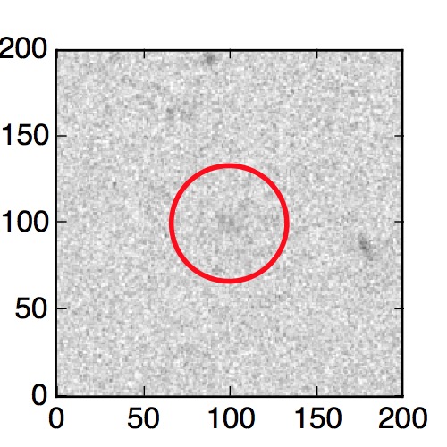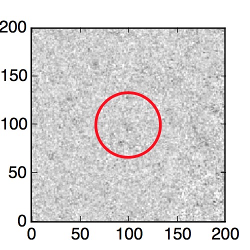 The red circle in the various panels is 1" in radius. The images are 6"x6".