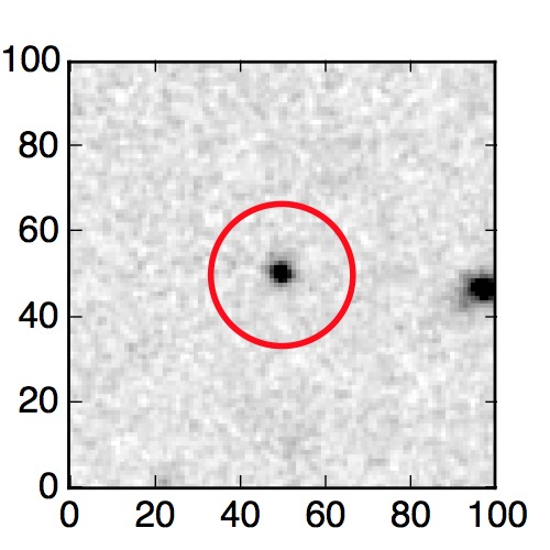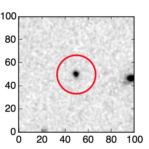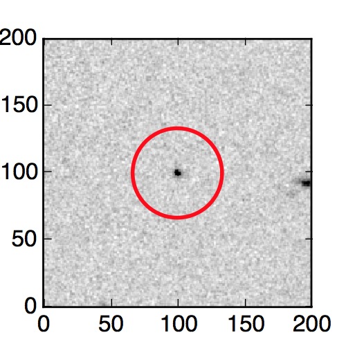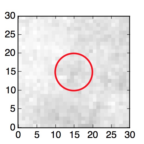 The red circle in the various panels is 1" in radius. The images are 6"x6".