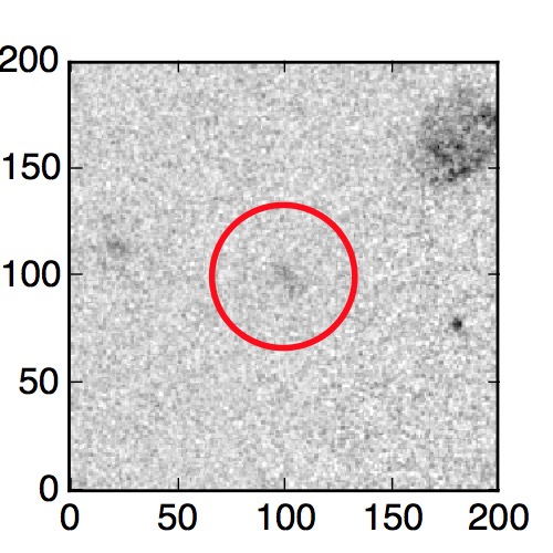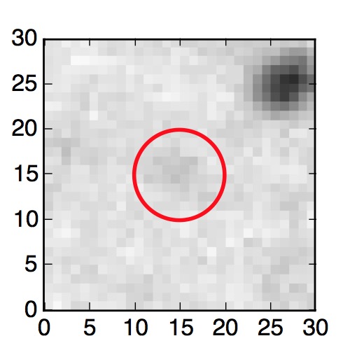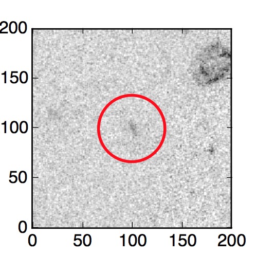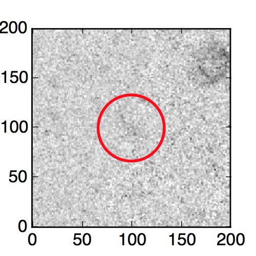 The red circle in the various panels is 1" in radius. The images are 6"x6".