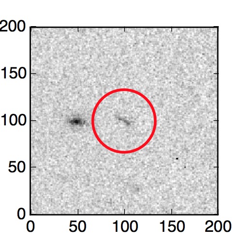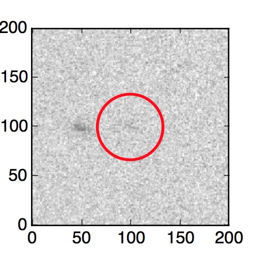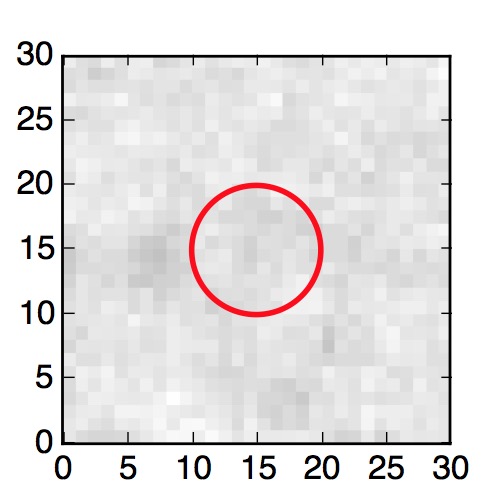 The red circle in the various panels is 1" in radius. The images are 6"x6".