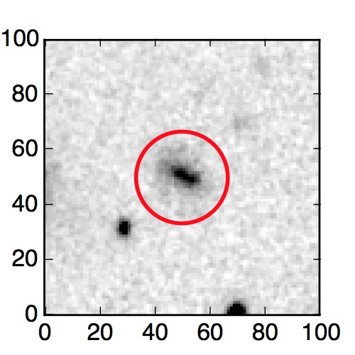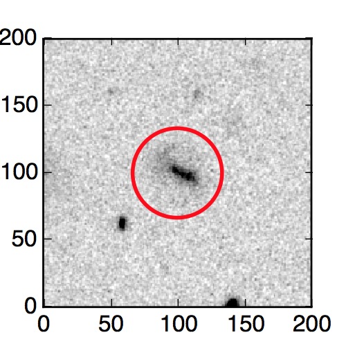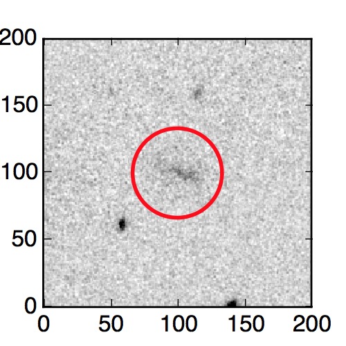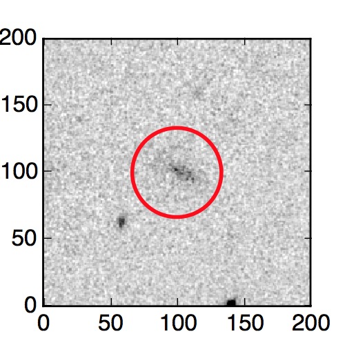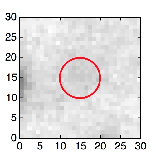 The red circle in the various panels is 1" in radius. The images are 6"x6".