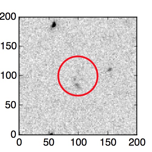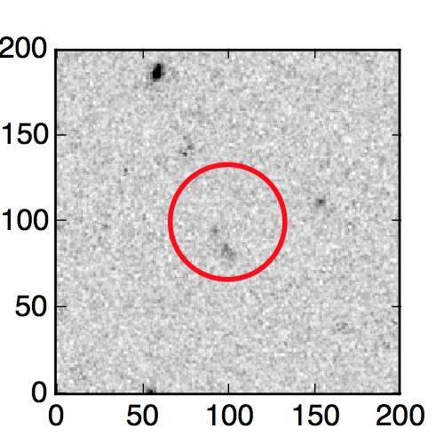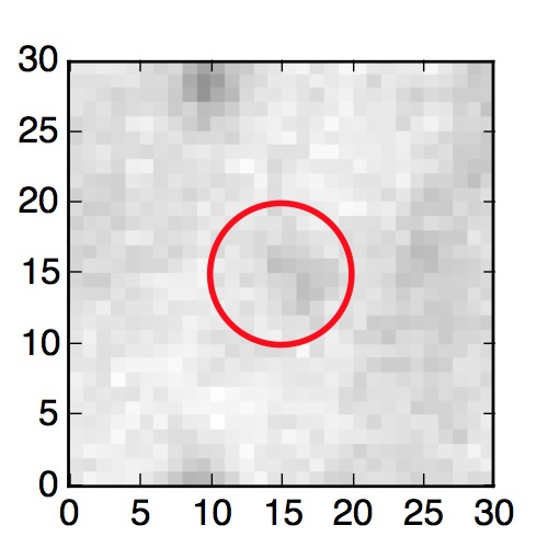 The red circle in the various panels is 1" in radius. The images are 6"x6".