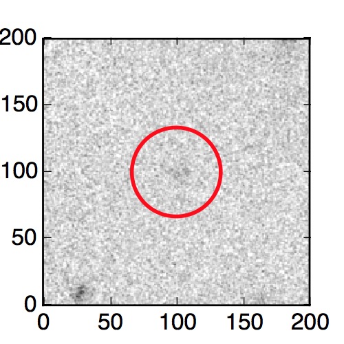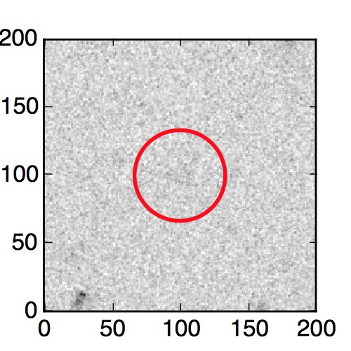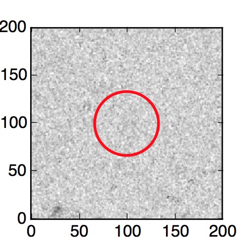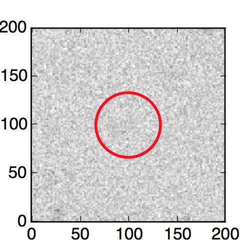 The red circle in the various panels is 1" in radius. The images are 6"x6".