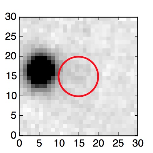 The red circle in the various panels is 1" in radius. The images are 6"x6".