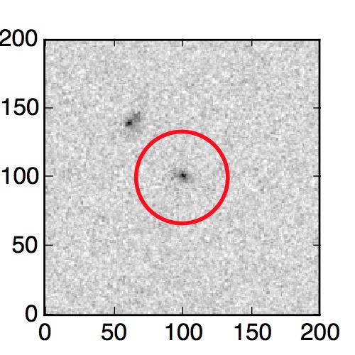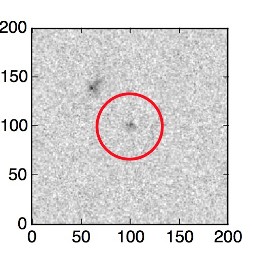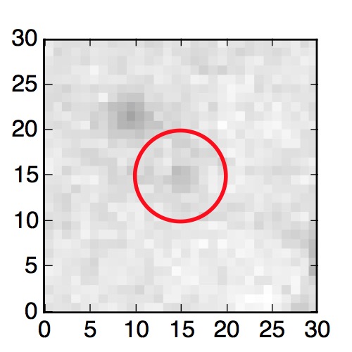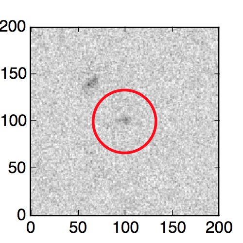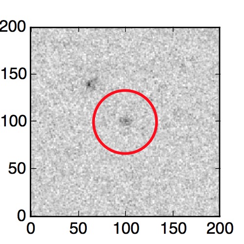 The red circle in the various panels is 1" in radius. The images are 6"x6".