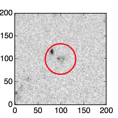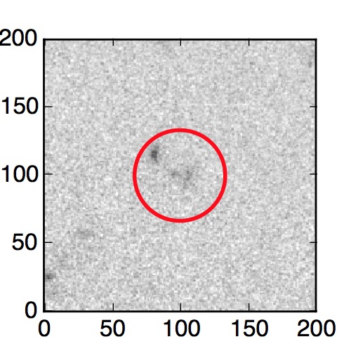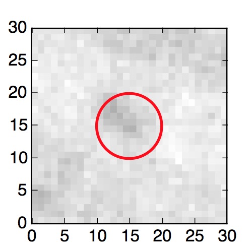 The red circle in the various panels is 1" in radius. The images are 6"x6".
