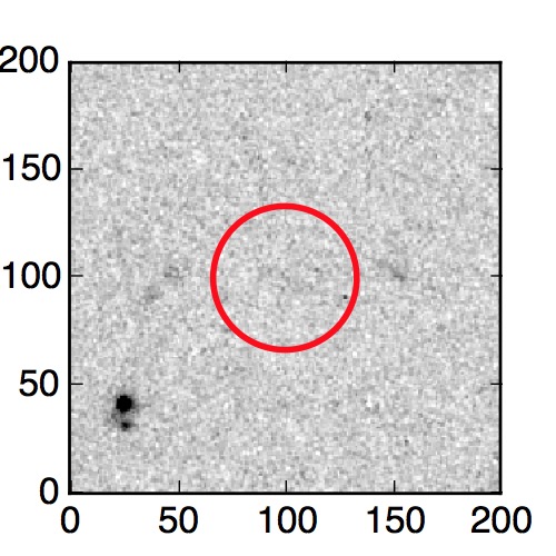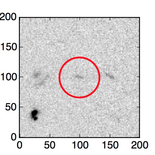 The red circle in the various panels is 1" in radius. The images are 6"x6".