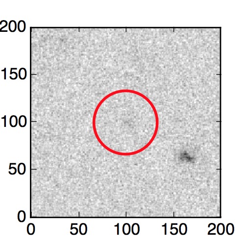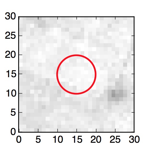 The red circle in the various panels is 1" in radius. The images are 6"x6".