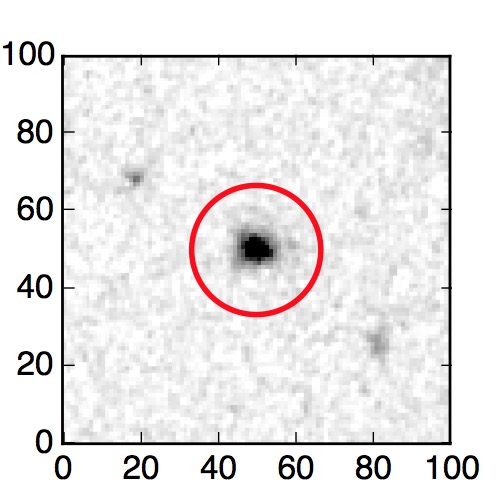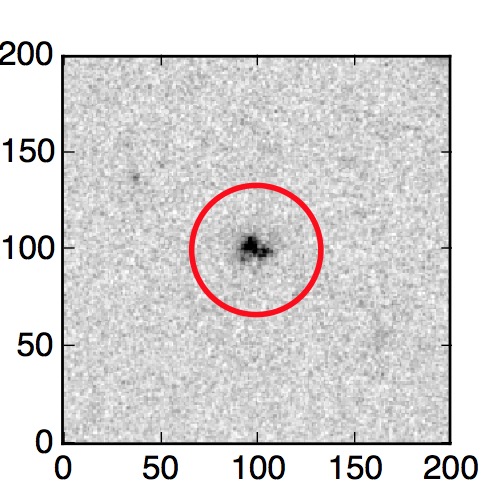The red circle in the various panels is 1" in radius. The images are 6"x6".