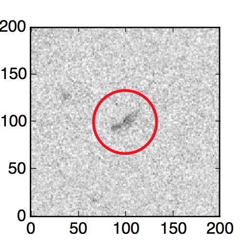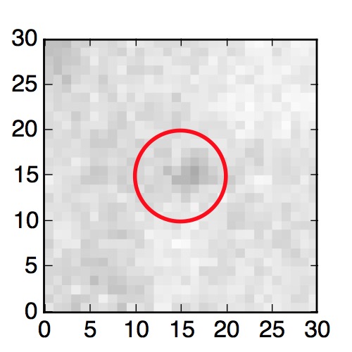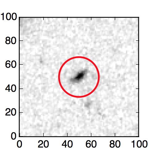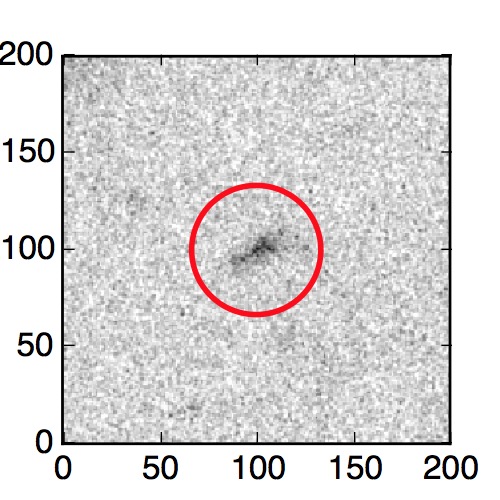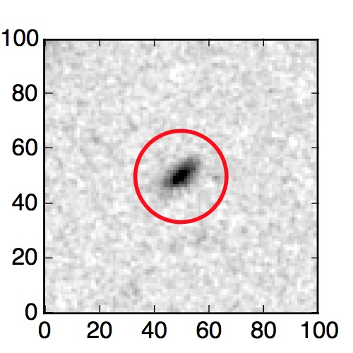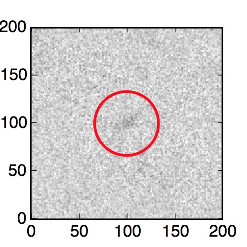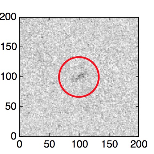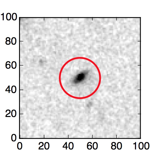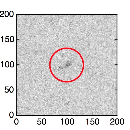 The red circle in the various panels is 1" in radius. The images are 6"x6".