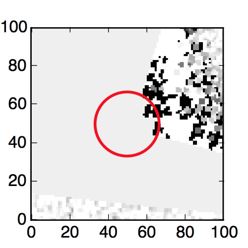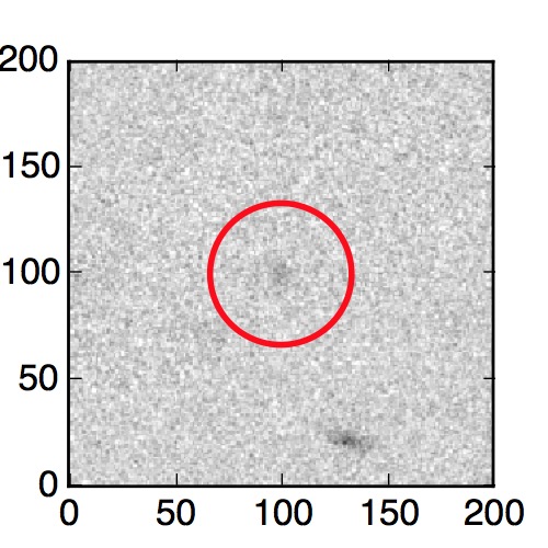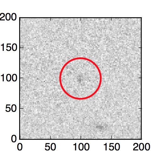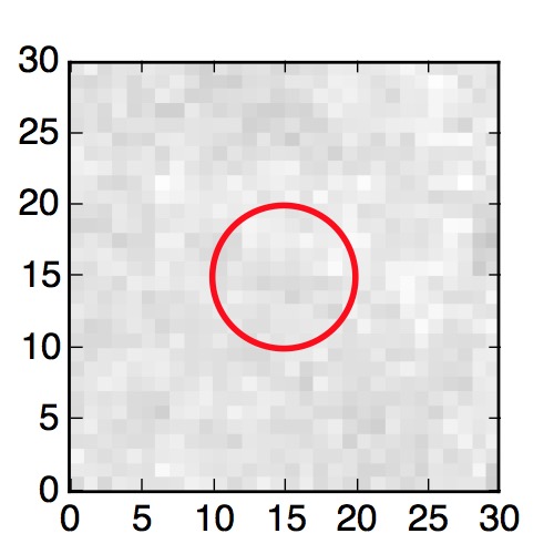 The red circle in the various panels is 1" in radius. The images are 6"x6".