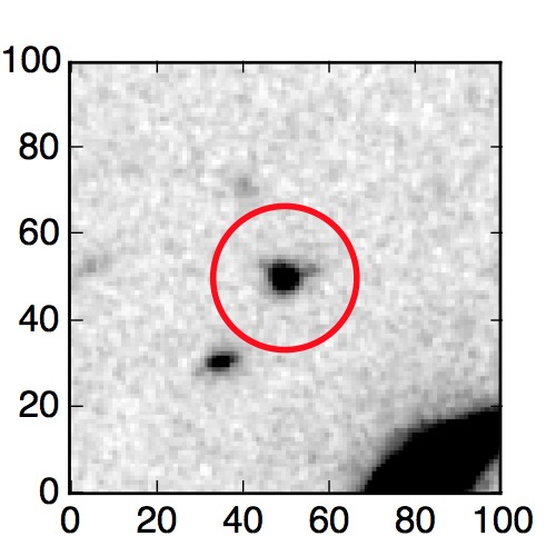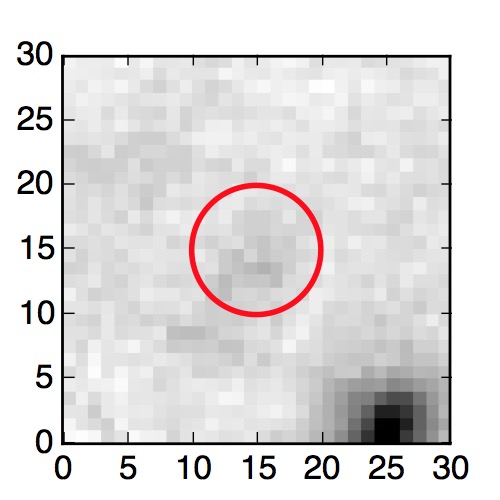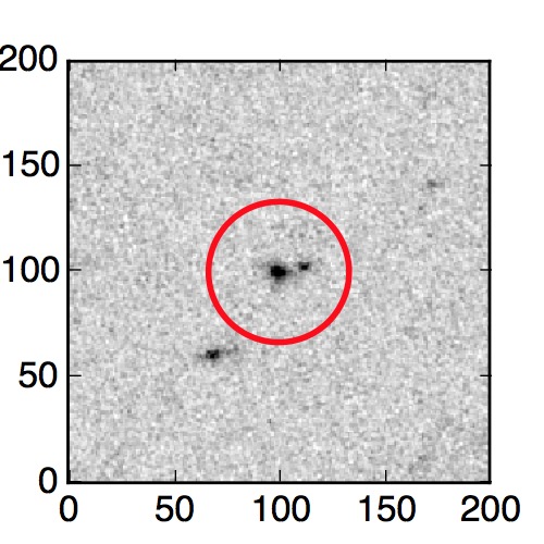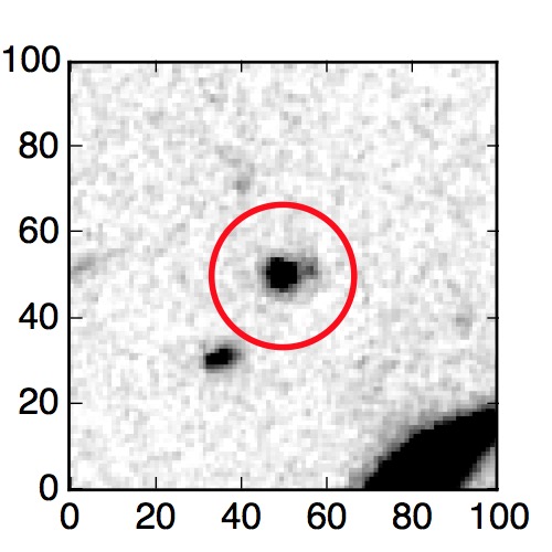 The red circle in the various panels is 1" in radius. The images are 6"x6".