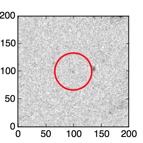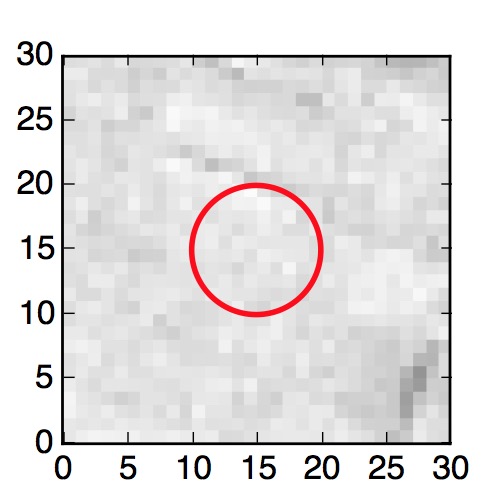 The red circle in the various panels is 1" in radius. The images are 6"x6".