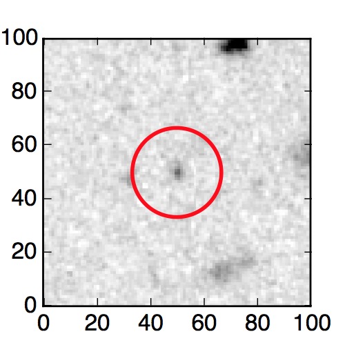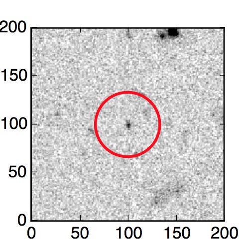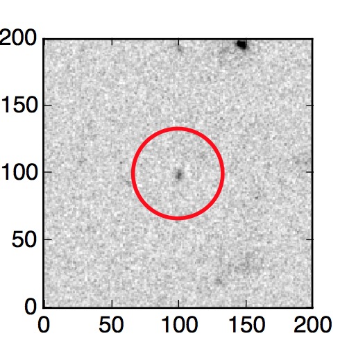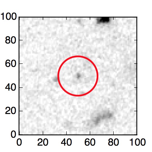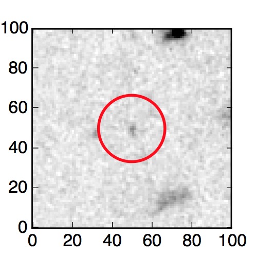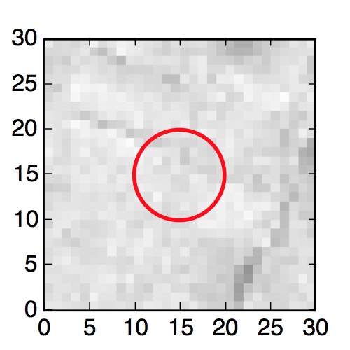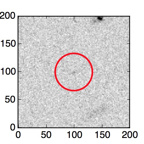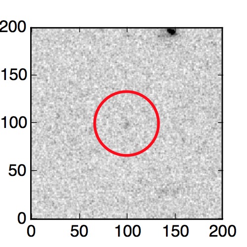 The red circle in the various panels is 1" in radius. The images are 6"x6".