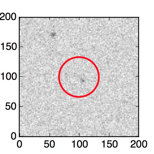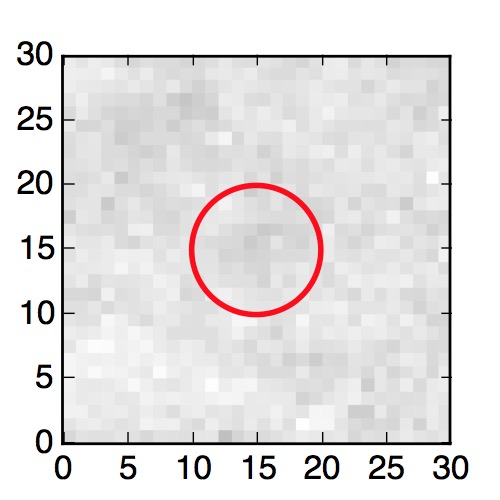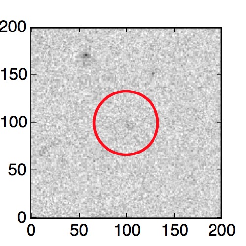 The red circle in the various panels is 1" in radius. The images are 6"x6".