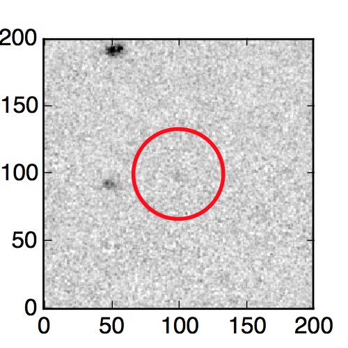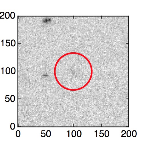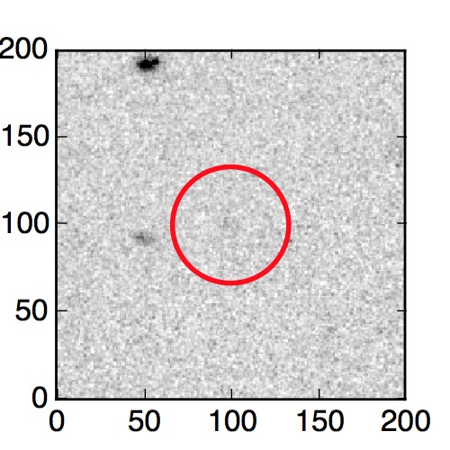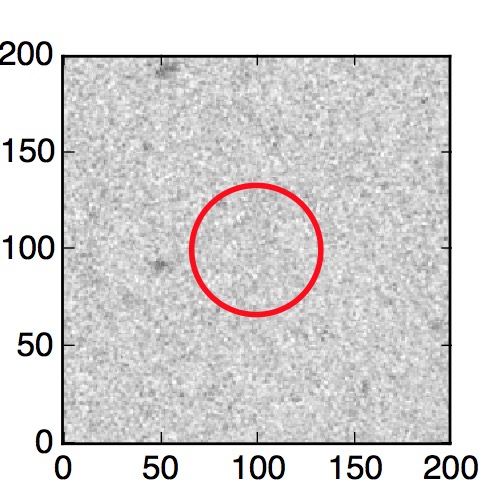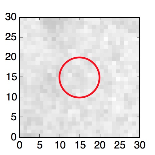 The red circle in the various panels is 1" in radius. The images are 6"x6".