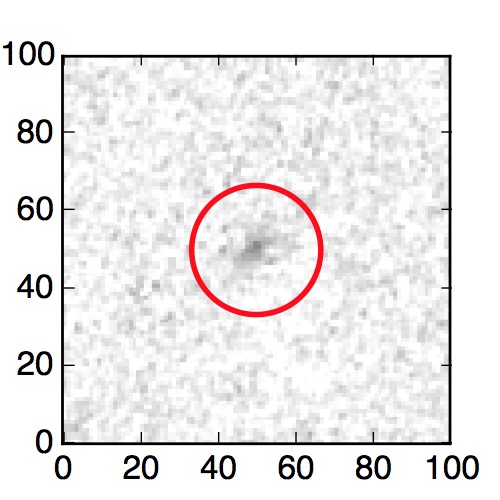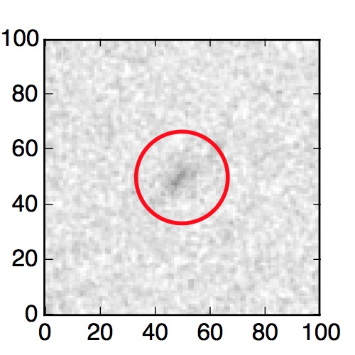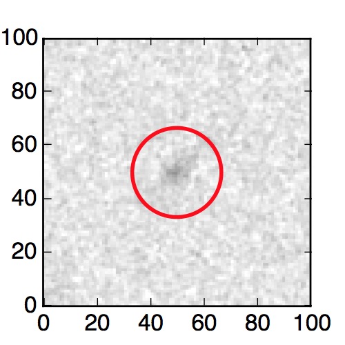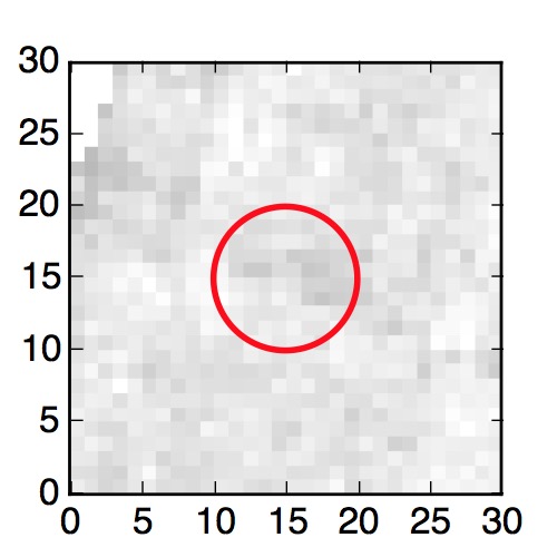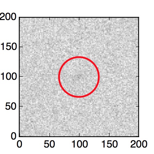 The red circle in the various panels is 1" in radius. The images are 6"x6".