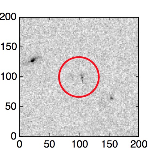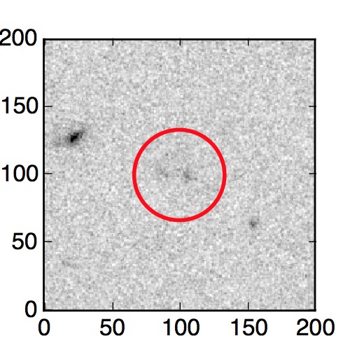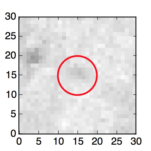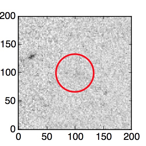 The red circle in the various panels is 1" in radius. The images are 6"x6".