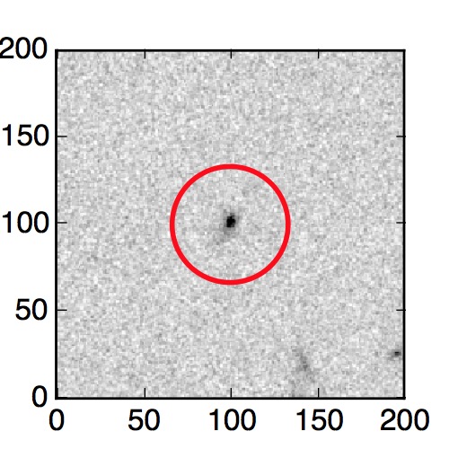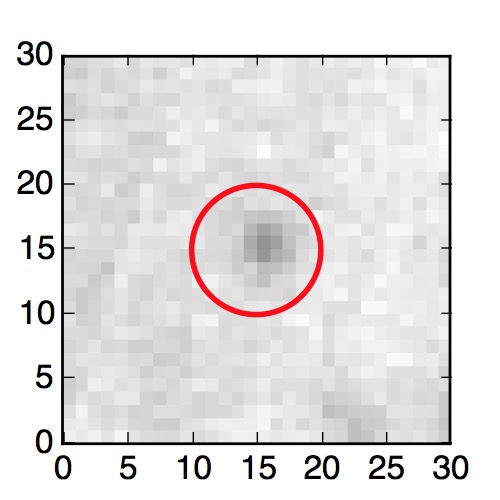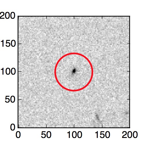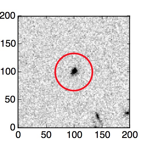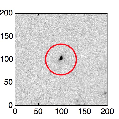The red circle in the various panels is 1" in radius. The images are 6"x6".