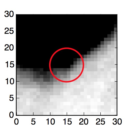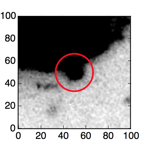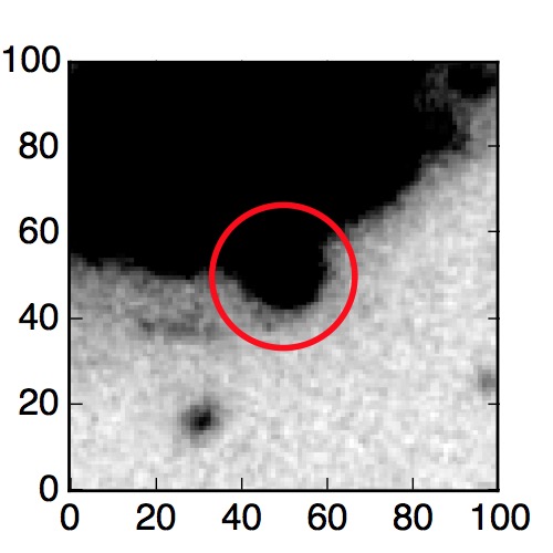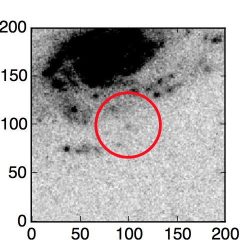 The red circle in the various panels is 1" in radius. The images are 6"x6".