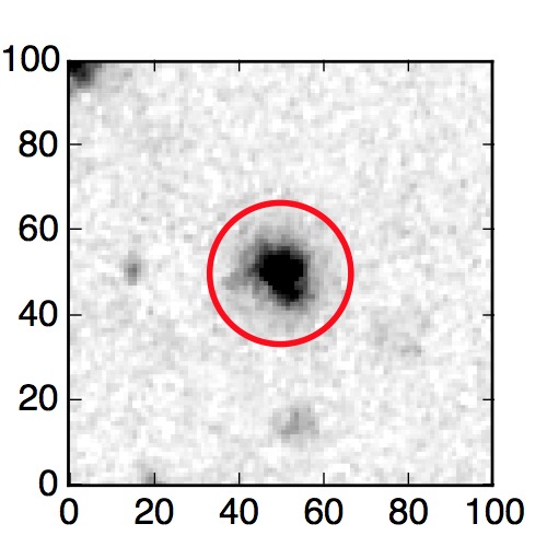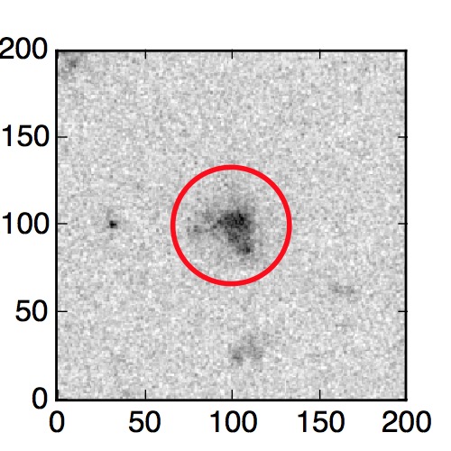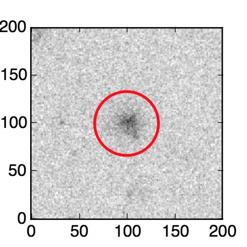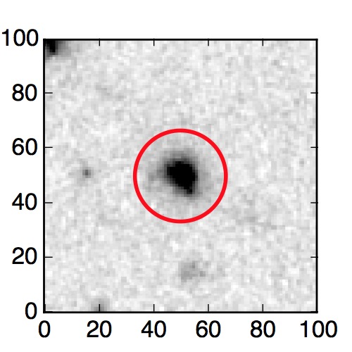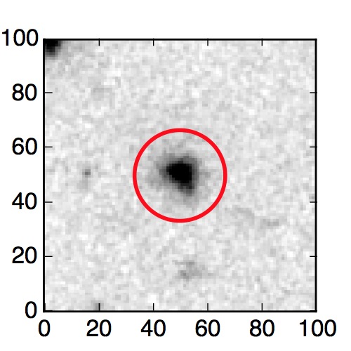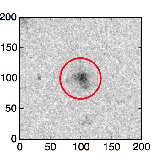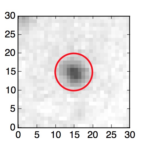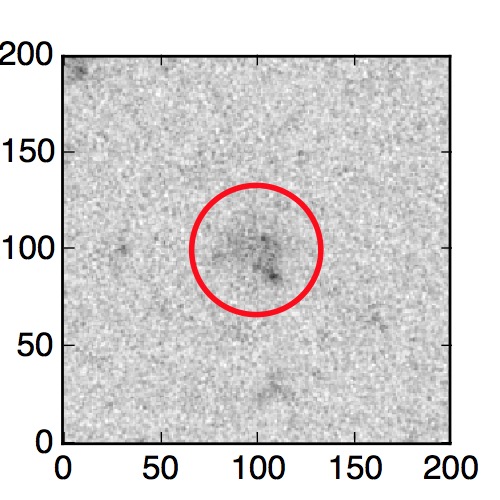 The red circle in the various panels is 1" in radius. The images are 6"x6".