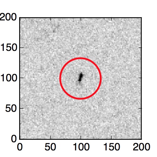 The red circle in the various panels is 1" in radius. The images are 6"x6".