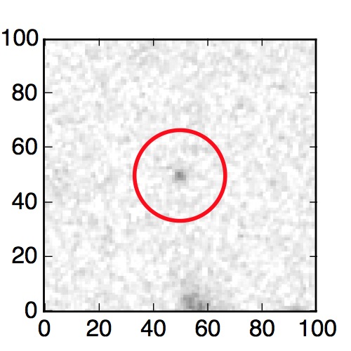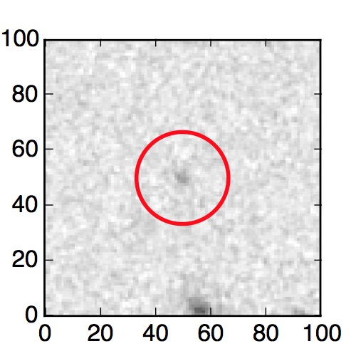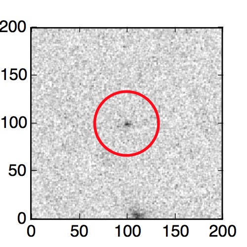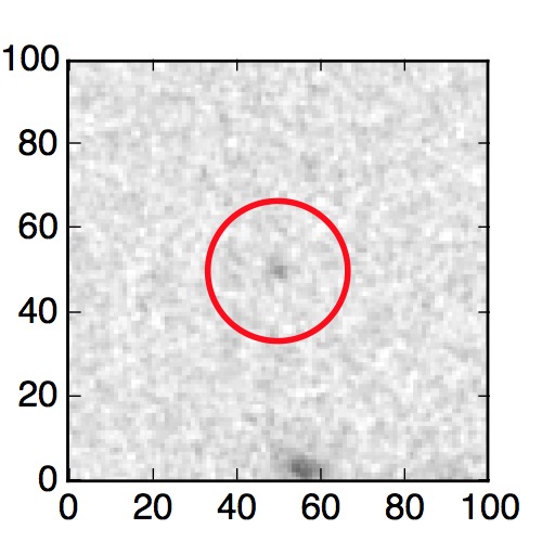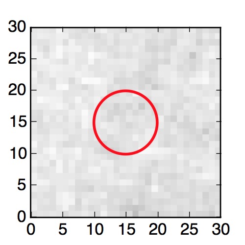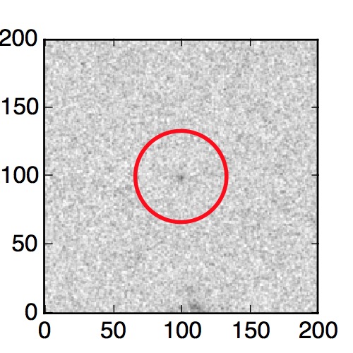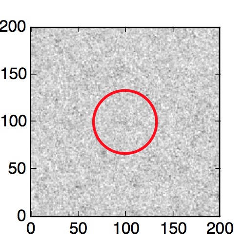 The red circle in the various panels is 1" in radius. The images are 6"x6".