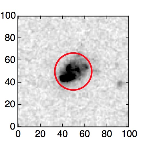 The red circle in the various panels is 1" in radius. The images are 6"x6".