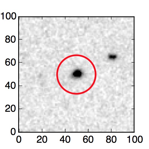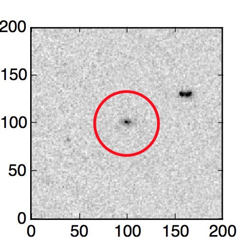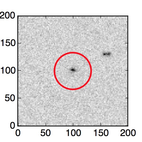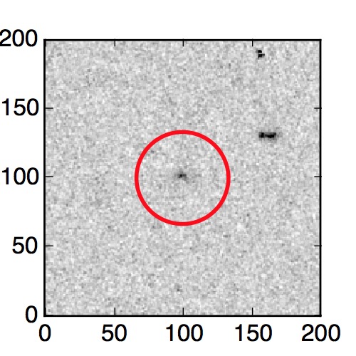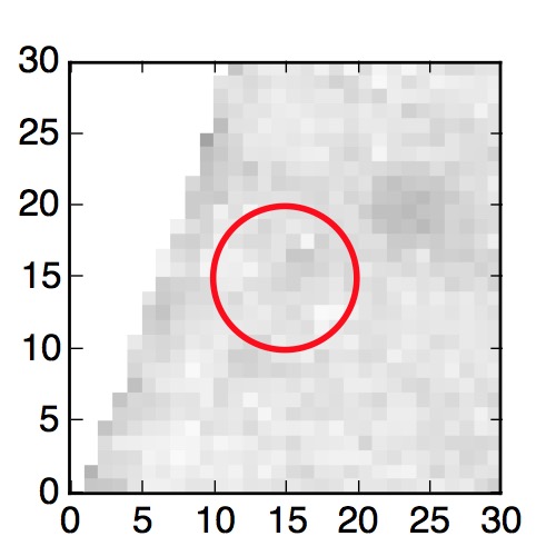 The red circle in the various panels is 1" in radius. The images are 6"x6".