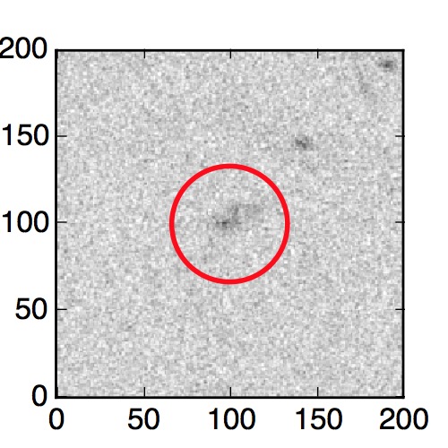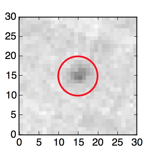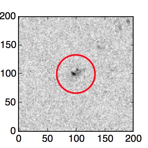 The red circle in the various panels is 1" in radius. The images are 6"x6".