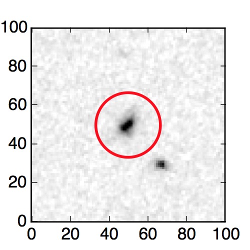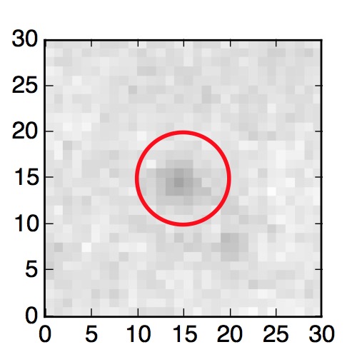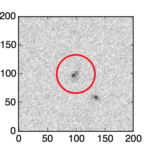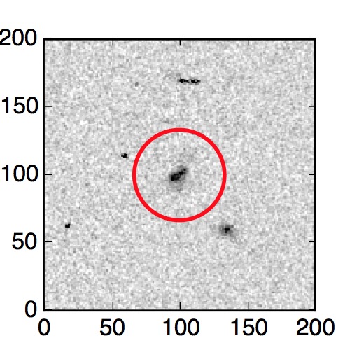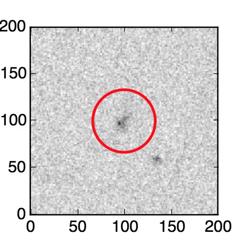 The red circle in the various panels is 1" in radius. The images are 6"x6".