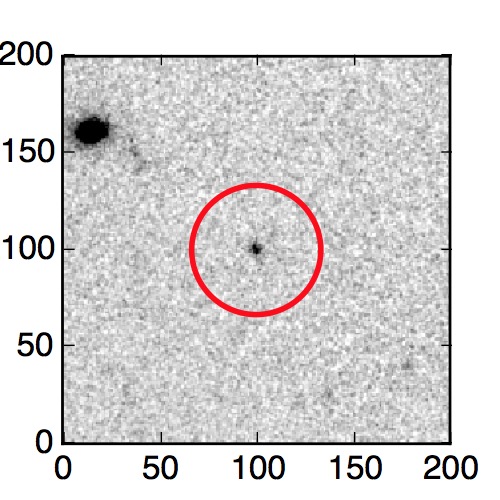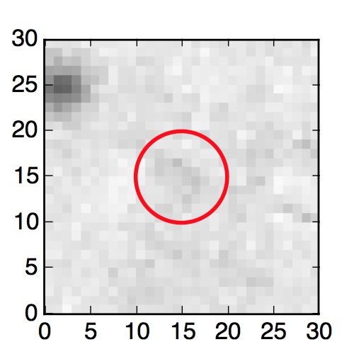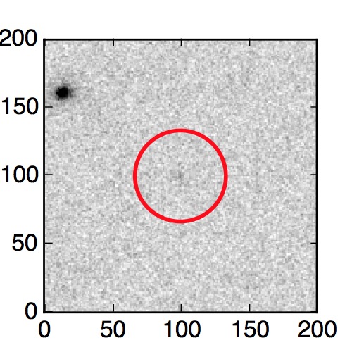 The red circle in the various panels is 1" in radius. The images are 6"x6".