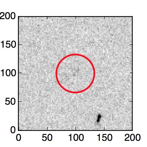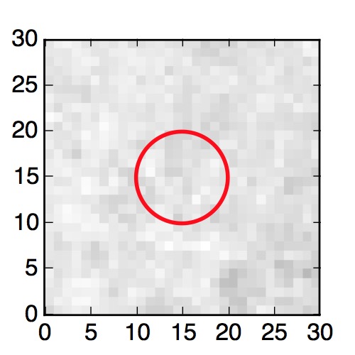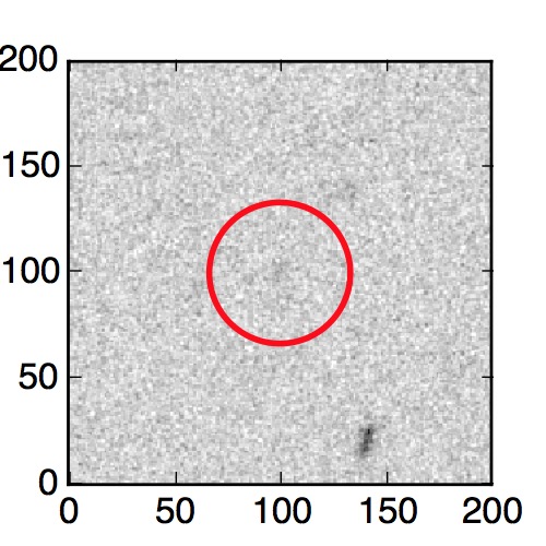 The red circle in the various panels is 1" in radius. The images are 6"x6".