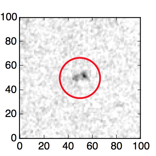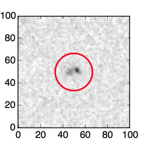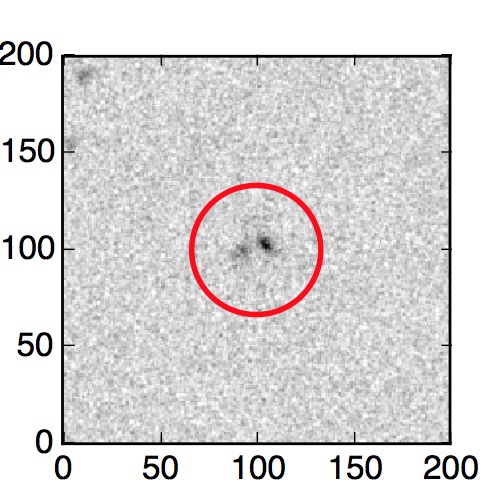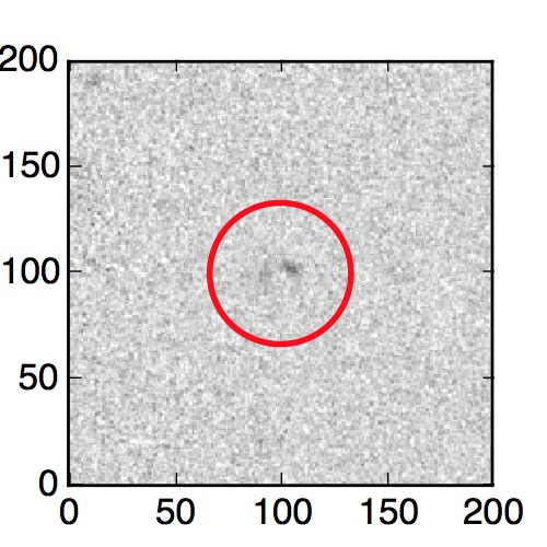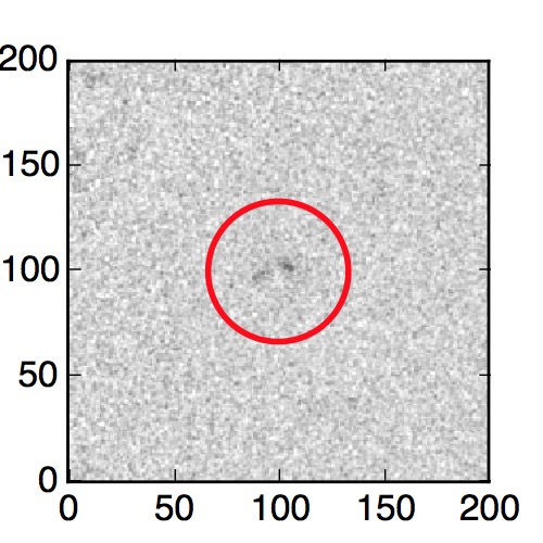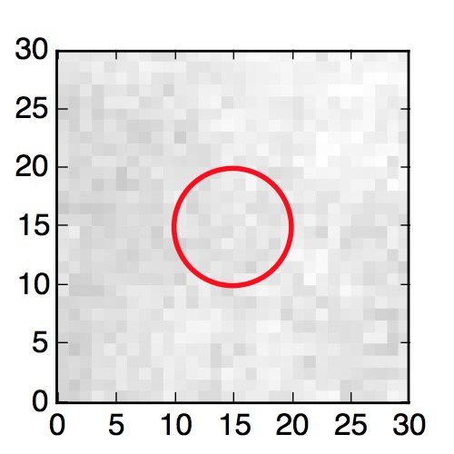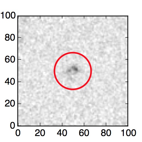 The red circle in the various panels is 1" in radius. The images are 6"x6".