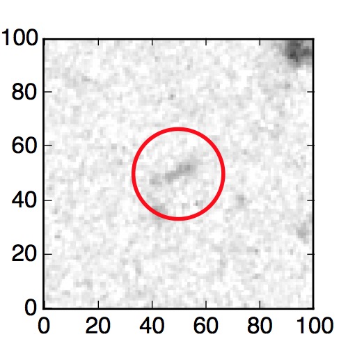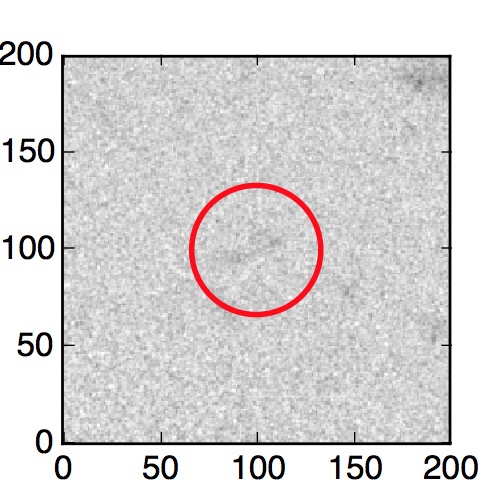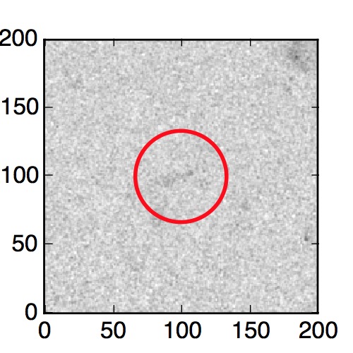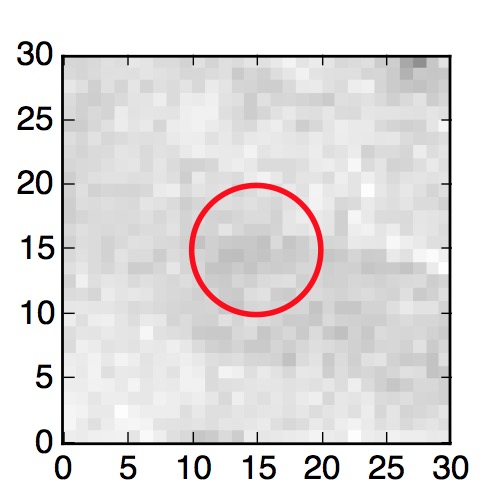 The red circle in the various panels is 1" in radius. The images are 6"x6".
