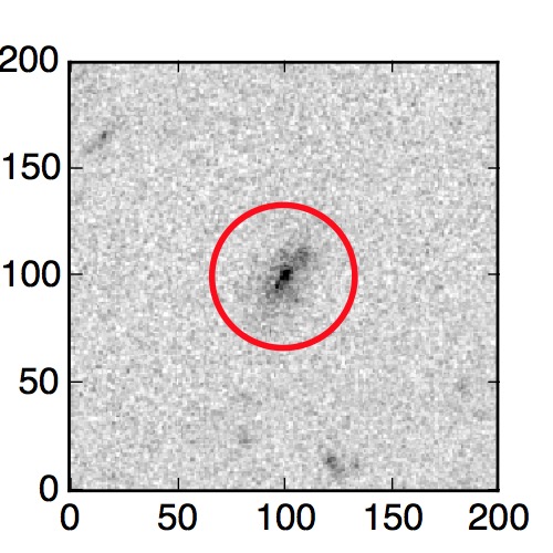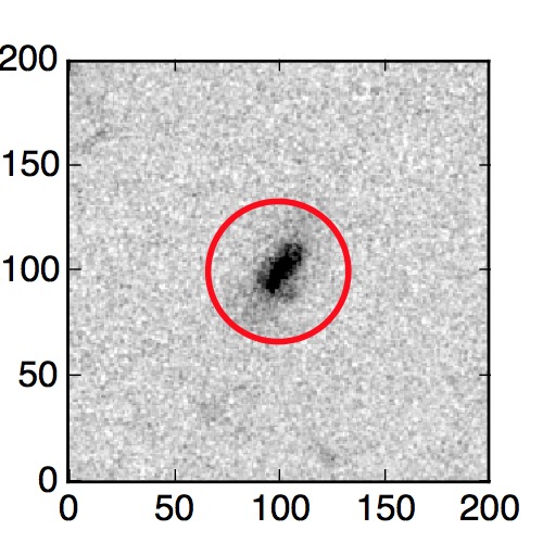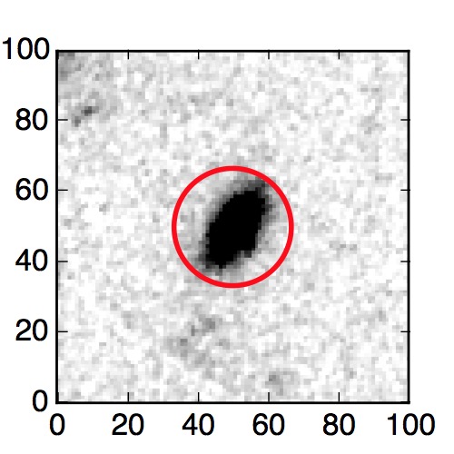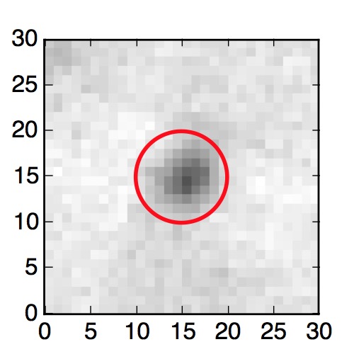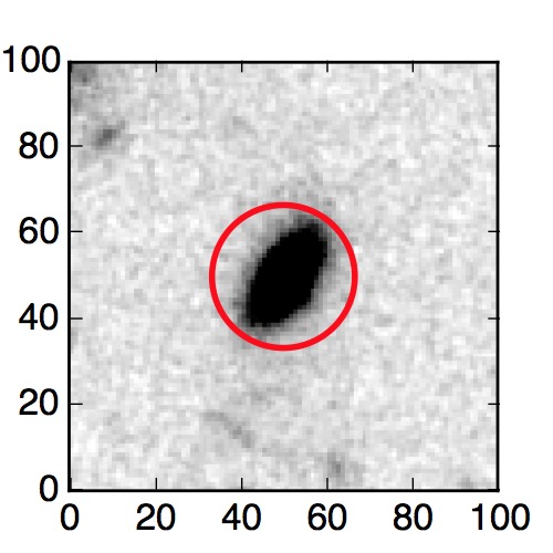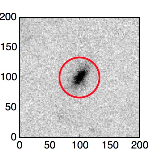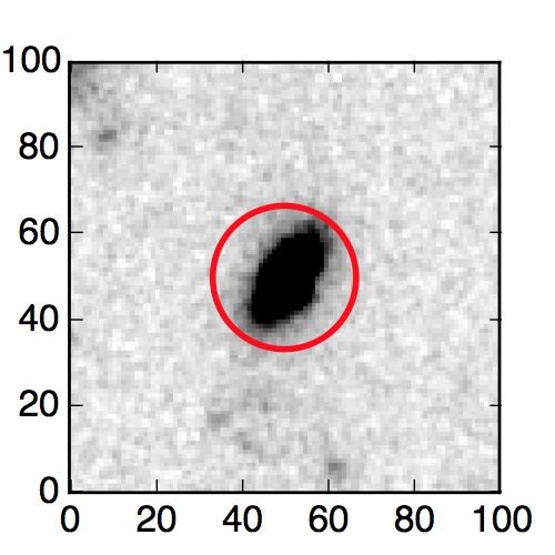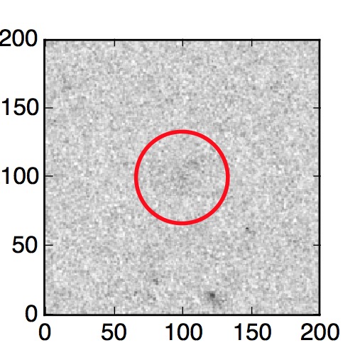 The red circle in the various panels is 1" in radius. The images are 6"x6".