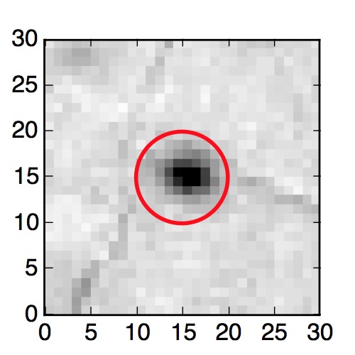 The red circle in the various panels is 1" in radius. The images are 6"x6".
