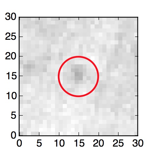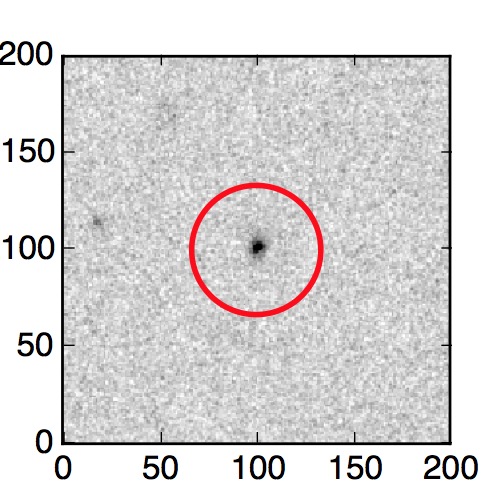 The red circle in the various panels is 1" in radius. The images are 6"x6".