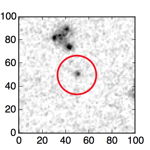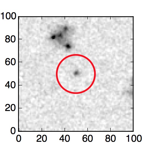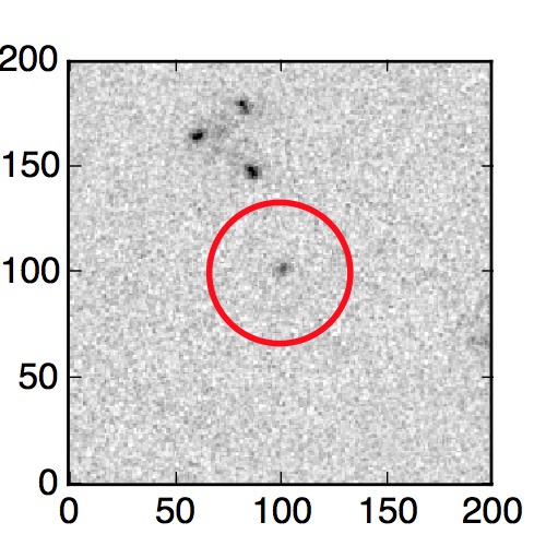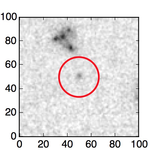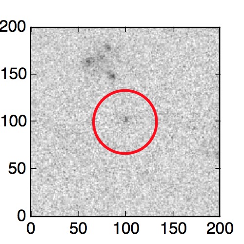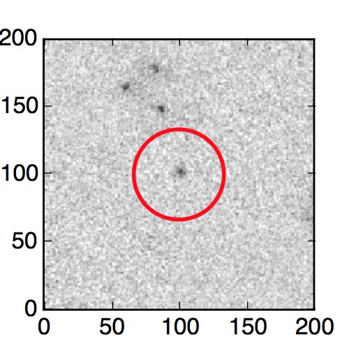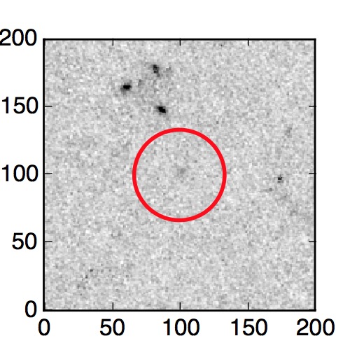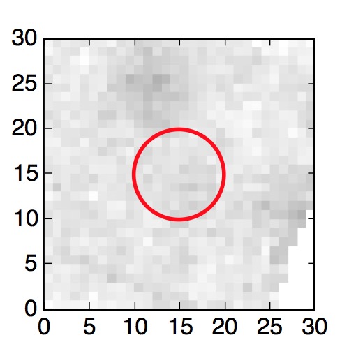 The red circle in the various panels is 1" in radius. The images are 6"x6".
