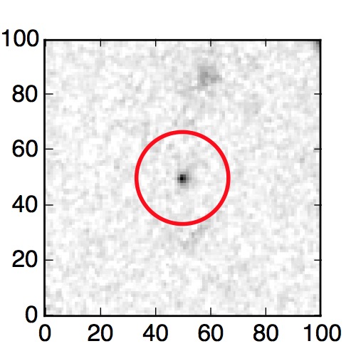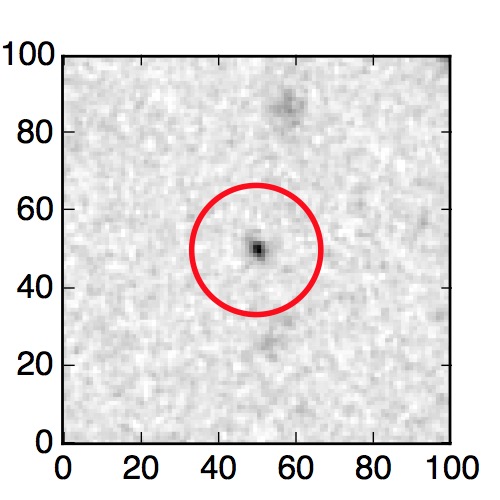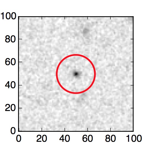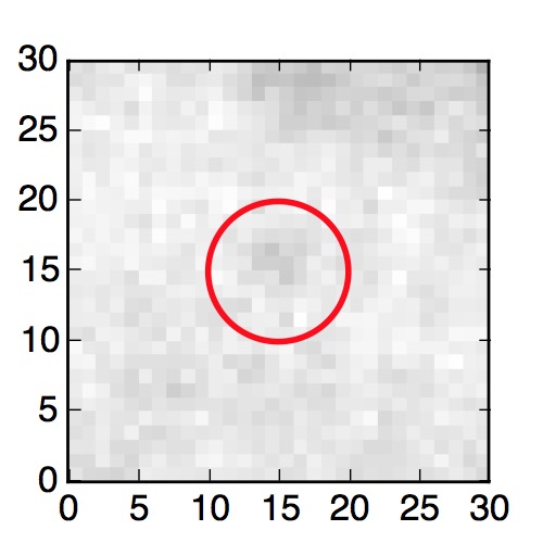 The red circle in the various panels is 1" in radius. The images are 6"x6".