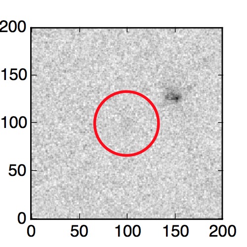 The red circle in the various panels is 1" in radius. The images are 6"x6".