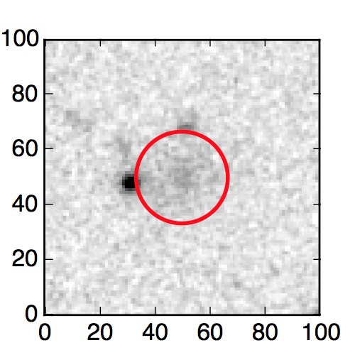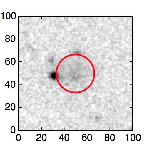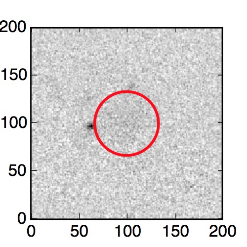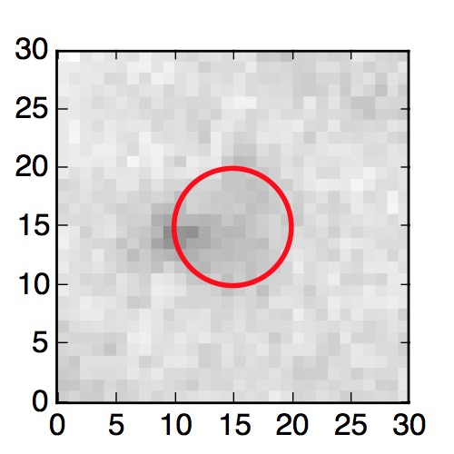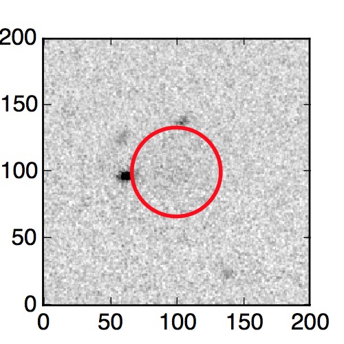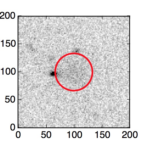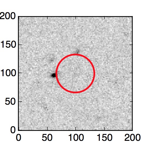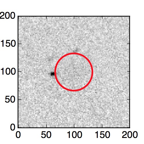 The red circle in the various panels is 1" in radius. The images are 6"x6".