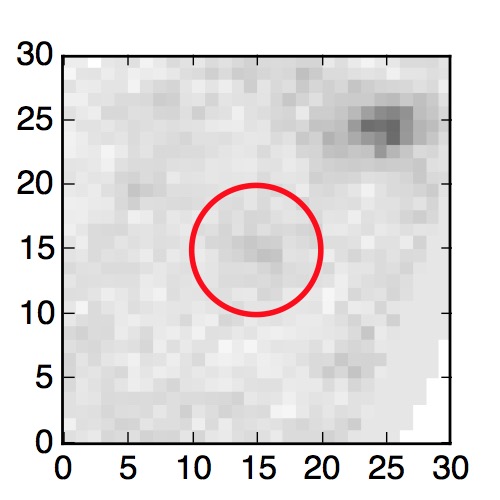 The red circle in the various panels is 1" in radius. The images are 6"x6".