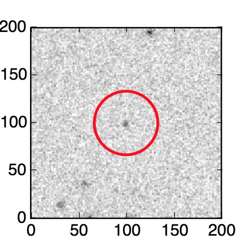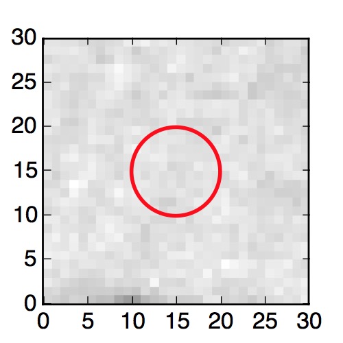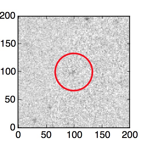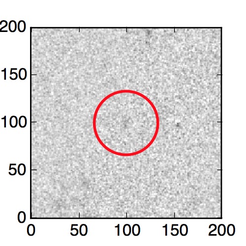 The red circle in the various panels is 1" in radius. The images are 6"x6".