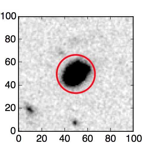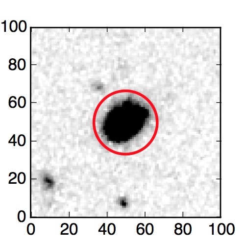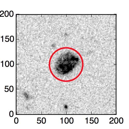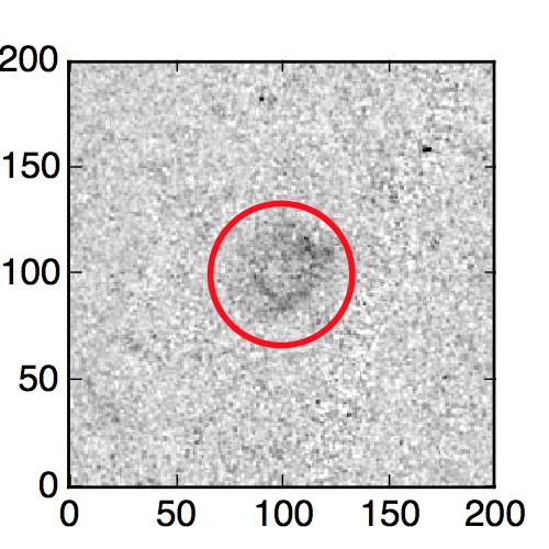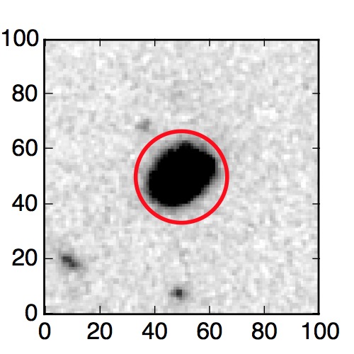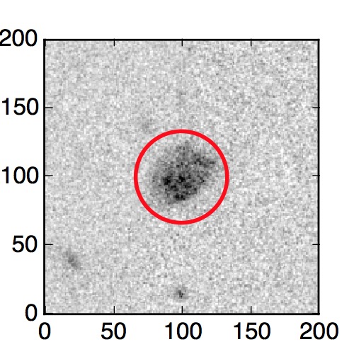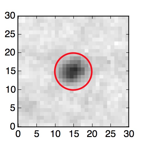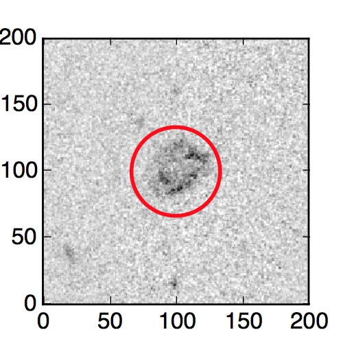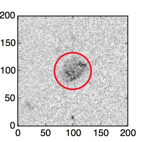 The red circle in the various panels is 1" in radius. The images are 6"x6".