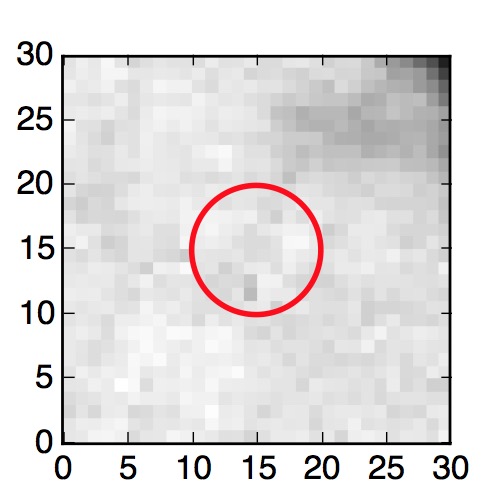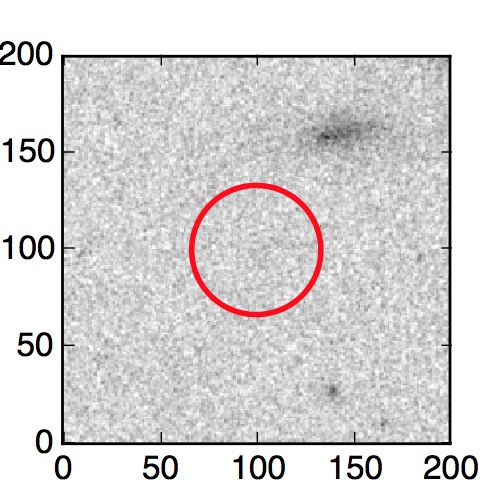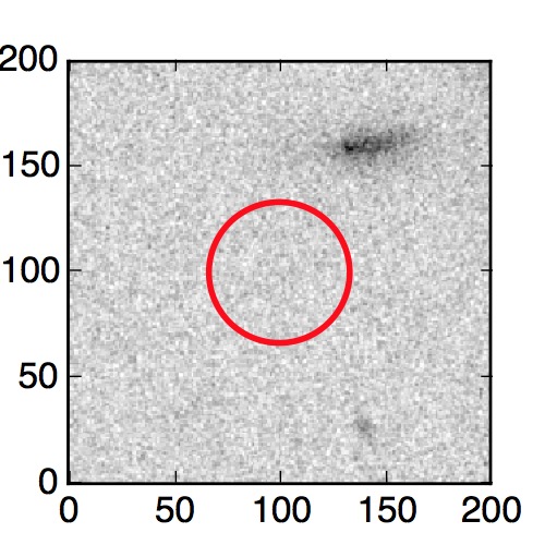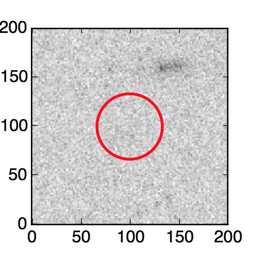 The red circle in the various panels is 1" in radius. The images are 6"x6".