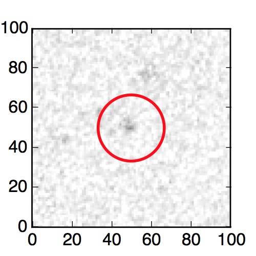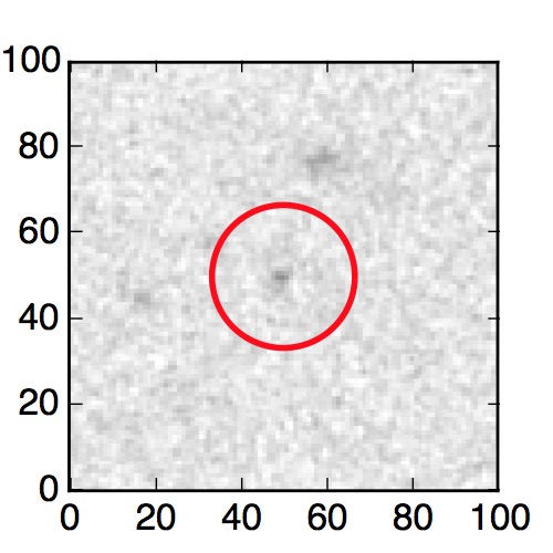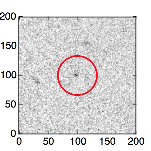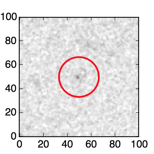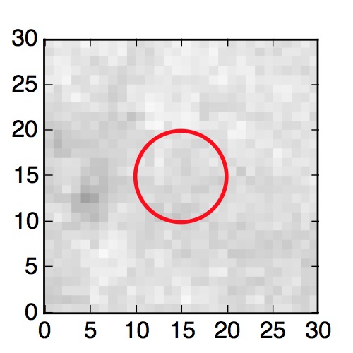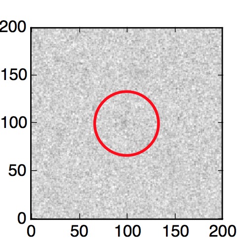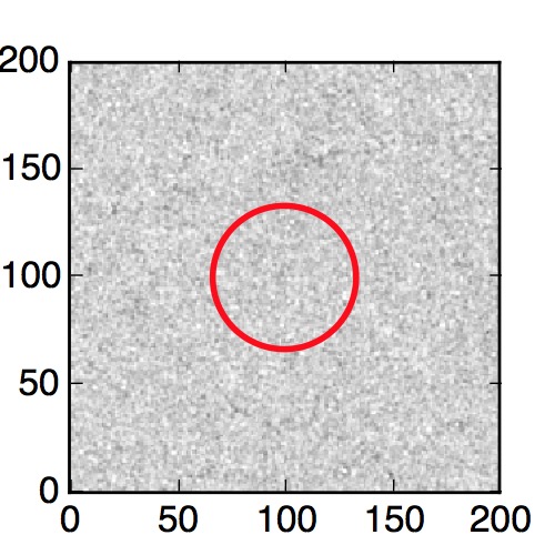 The red circle in the various panels is 1" in radius. The images are 6"x6".
